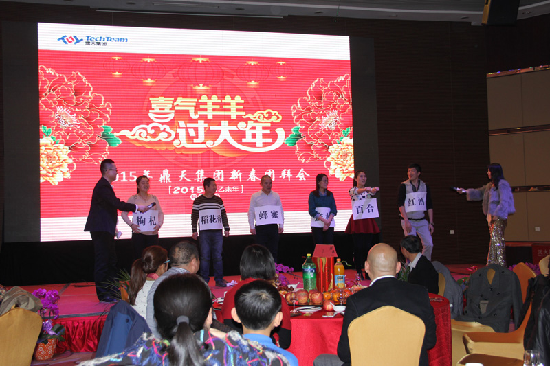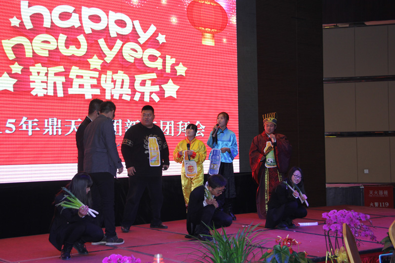 2015年2月13日,伴随着喜庆的乐曲,2015年鼎天集团新春团拜会拉开了帷幕。珍佰粮行、济农公司、谷丰公司、裕兴公司、联合信息及鼎天集团各职能部门的三百余名员工及特邀的CGA经销商嘉宾等欢聚在西安天朗时代大酒店九楼宴会大厅,以精彩纷呈的文艺节目庆祝即将到来的农历新年。