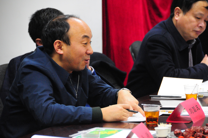 2016年1月1日下午,河南省周口市沈丘县县长刘国庆、副县长马伟和夏新明一行十余人莅临鼎天集团参观考察,鼎天集团总裁李涛、珍佰农公司执行总裁王明利、珍佰粮行副总裁高虎、珍佰农公司副总裁刘勇等与来宾在会议室举行了座谈会,双方就珍佰粮行、珍佰农公司与沈丘县开展合作的事宜进行了热烈探讨。